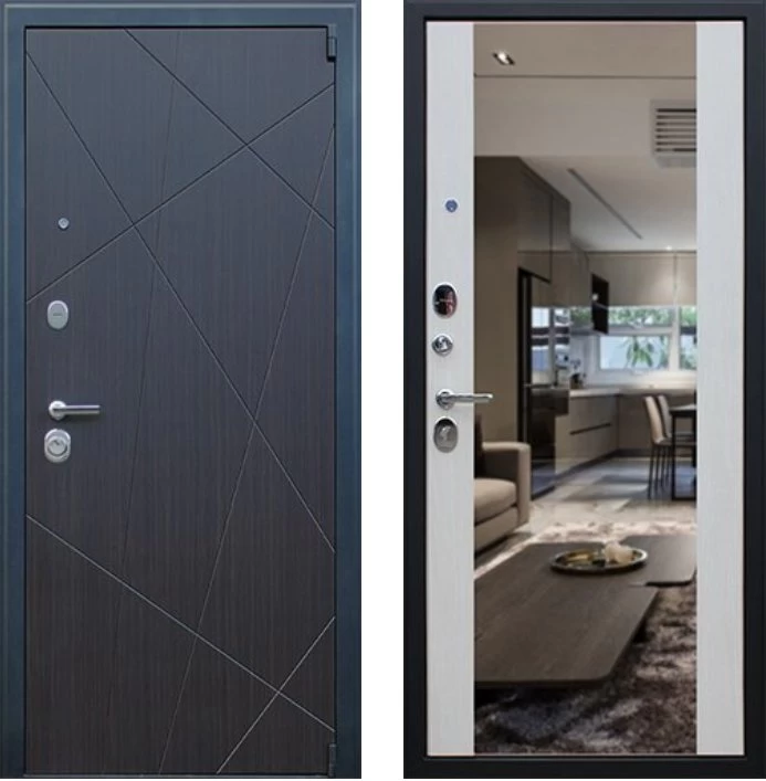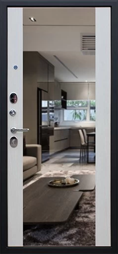 Надежная входная Дверь Вектор с зеркалом премиум класса по цене 49 713 руб. Большая толщина стали защитит от проникновения в ваш дом, квартиру или коттедж. Используется очень качественная фурнитура: замки, цилиндры, ручки, защелки. Покрытие и отделка двери изготовлено под внимательным контролем производителя. Дверь имеет долгий срок службы и гарантию.