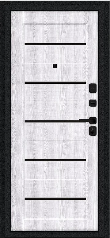 Надежная входная Дверь Браво Борн/SBlack Букле черное/Riviera Ice премиум класса по цене 32 063 руб. Большая толщина стали защитит от проникновения в ваш дом, квартиру или коттедж. Используется очень качественная фурнитура: замки, цилиндры, ручки, защелки. Покрытие и отделка двери изготовлено под внимательным контролем производителя. Дверь имеет долгий срок службы и гарантию.
