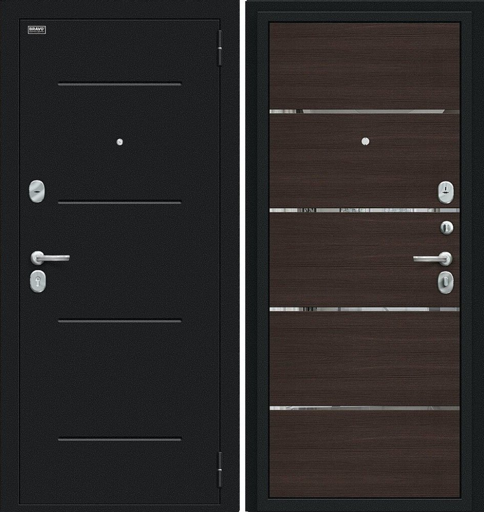 Надежная входная Дверь Браво Лайн Букле черное/Wenge Veralinga премиум класса по цене 30 633 руб. Большая толщина стали защитит от проникновения в ваш дом, квартиру или коттедж. Используется очень качественная фурнитура: замки, цилиндры, ручки, защелки. Покрытие и отделка двери изготовлено под внимательным контролем производителя. Дверь имеет долгий срок службы и гарантию.