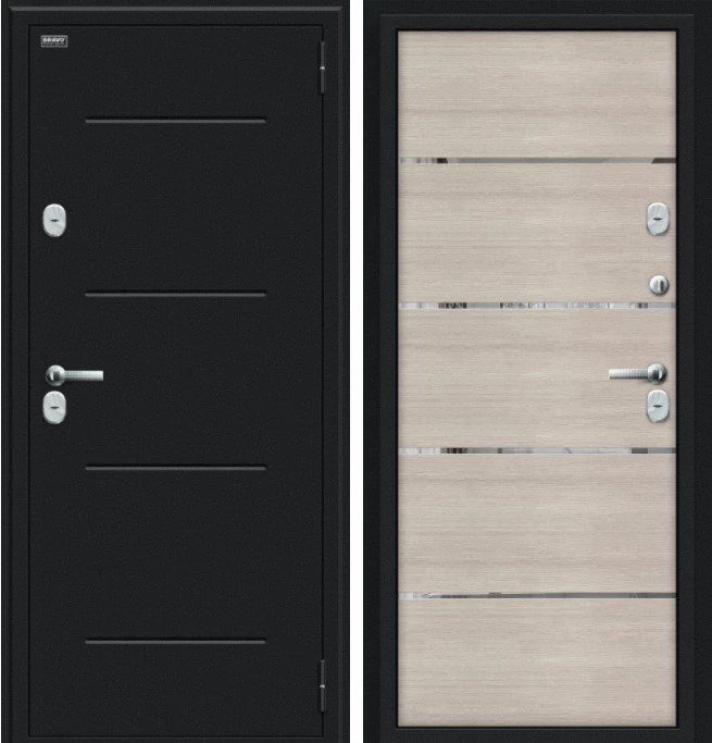 Надежная входная Дверь Браво Thermo Лайн Букле черное/Cappuccino Veralinga премиум класса по цене 48 413 руб. Большая толщина стали защитит от проникновения в ваш дом, квартиру или коттедж. Используется очень качественная фурнитура: замки, цилиндры, ручки, защелки. Покрытие и отделка двери изготовлено под внимательным контролем производителя. Дверь имеет долгий срок службы и гарантию.