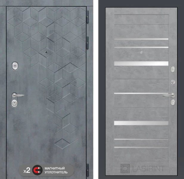 Дизайнерская входная Дверь Бетон класса Люкс с несколькими листами стали, звукоизоляцией и теплоизоляцией. Утепленный короб и полотно защитят от сквозняков и шумов. Модель не только надежная, комфортная, защищенная и высочайшего качества, но и очень красивая! Будет отлично сочетаться с интерьером дома, квартиры или офиса. Сейчас действует выгодное предложение по цене: 54 663 руб.