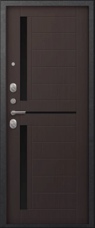 Надежная входная Дверь A-01 черный сатин - лиственница тёмная премиум класса по цене 31 713 руб. Большая толщина стали защитит от проникновения в ваш дом, квартиру или коттедж. Используется очень качественная фурнитура: замки, цилиндры, ручки, защелки. Покрытие и отделка двери изготовлено под внимательным контролем производителя. Дверь имеет долгий срок службы и гарантию.