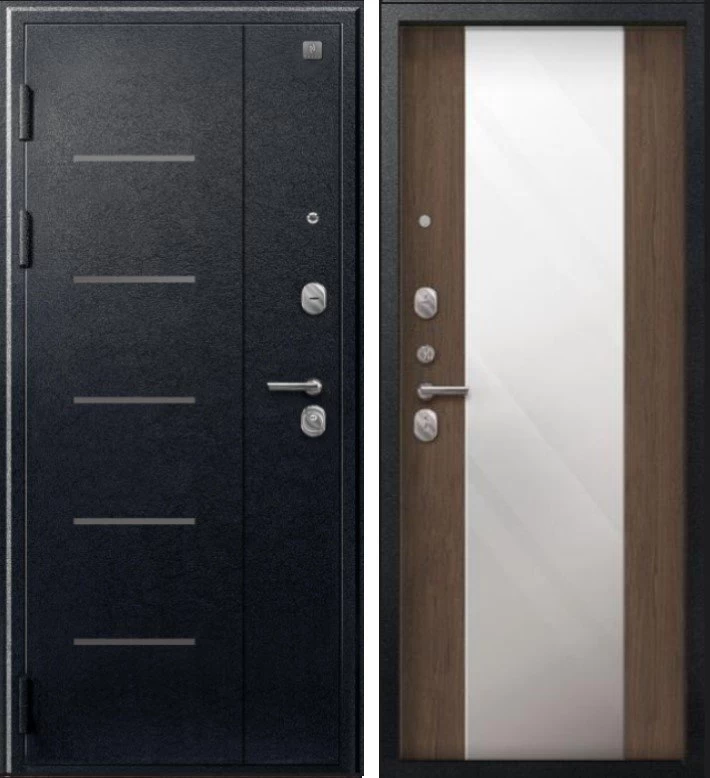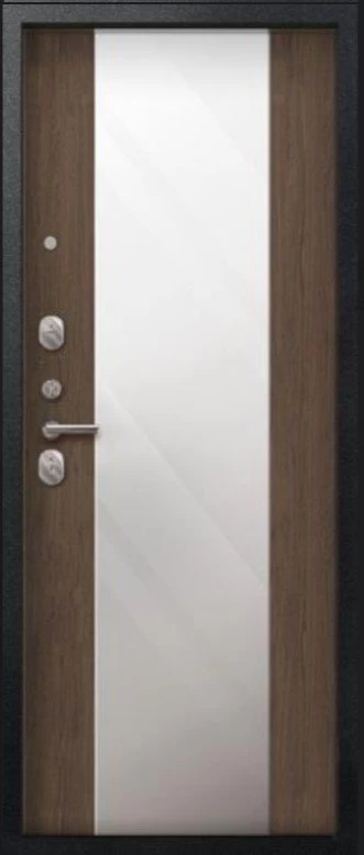 Надежная входная Дверь V-04 Черный муар - Миндаль Зеркало премиум класса по цене 43 163 руб. Большая толщина стали защитит от проникновения в ваш дом, квартиру или коттедж. Используется очень качественная фурнитура: замки, цилиндры, ручки, защелки. Покрытие и отделка двери изготовлено под внимательным контролем производителя. Дверь имеет долгий срок службы и гарантию.