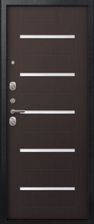 Надежная входная Дверь V-05 Черный муар - Темная лиственница премиум класса по цене 42 413 руб. Большая толщина стали защитит от проникновения в ваш дом, квартиру или коттедж. Используется очень качественная фурнитура: замки, цилиндры, ручки, защелки. Покрытие и отделка двери изготовлено под внимательным контролем производителя. Дверь имеет долгий срок службы и гарантию.